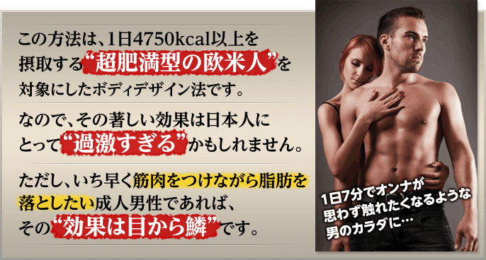 重要なのは、体質や毎日のハードトレーニング、薬品に頼らずして、カロリー大国USAで、