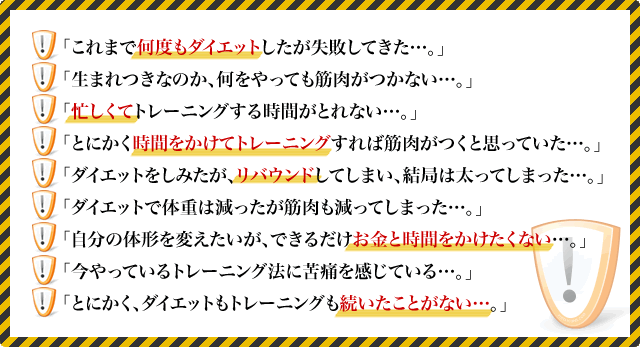 たとえば、あなたは次のようなトレーニングやダイエットで失敗した経験はありませんか?